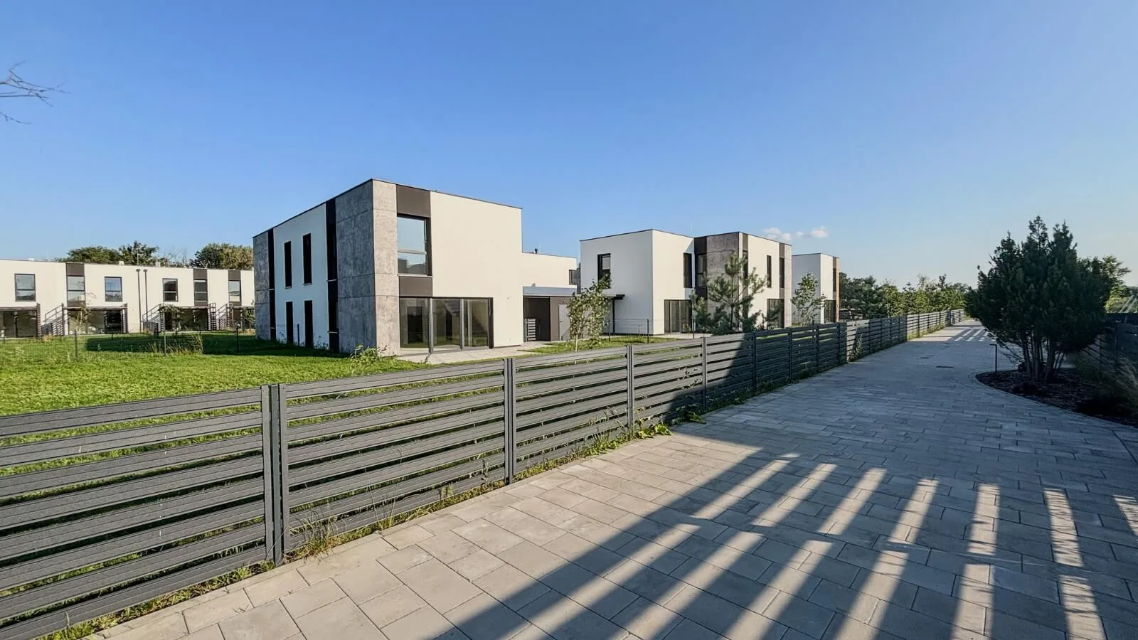 Każdy dom wpisuje się w przemyślany układ osiedla, z prostą, ponadczasową architekturą, która zawsze wygląda dobrze.