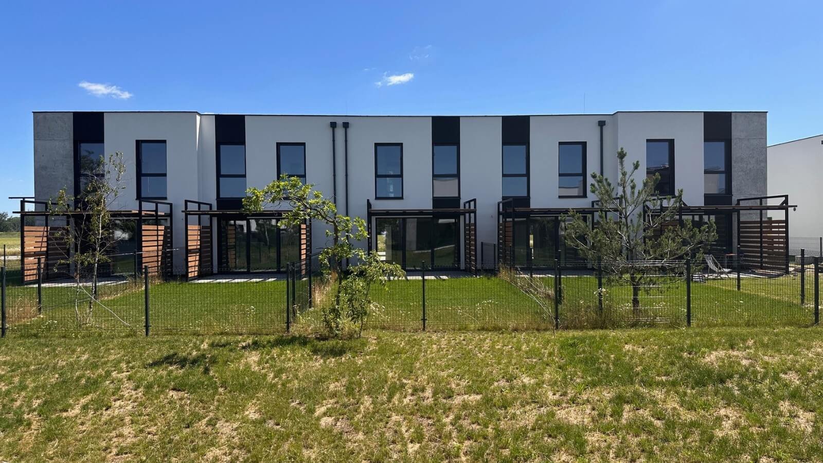 Konstrukcja: Silikaty, płyta fundamentowa, biały płaski dach gotowy pod panele fotowoltaiczne.